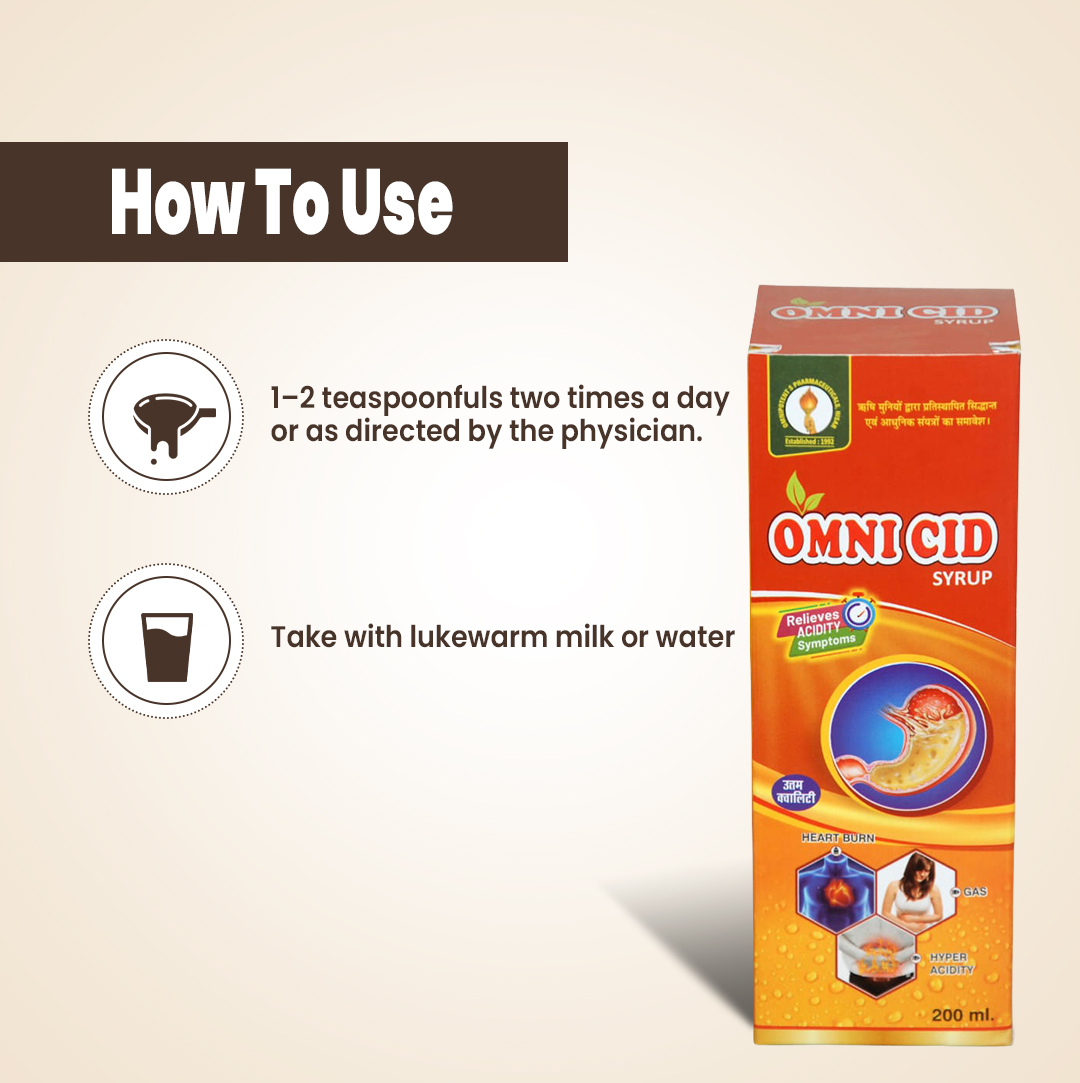 OMNI CID Syrup is a powerful herbal digestive formula designed to provide fast and effective relief from acidity, gas, bloating, and indigestion. Enriched with natural ingredients, it helps balance stomach acid, soothes irritation, and supports healthy digestion. OMNI’s trusted formulation promotes long-term digestive comfort and overall wellness — making it the perfect daily solution for a healthy stomach.